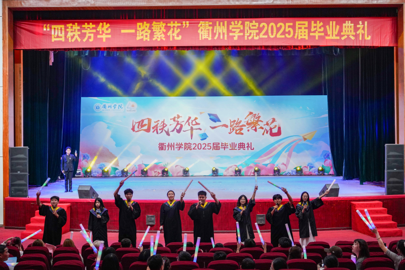 在求学时光里,衢院学子奋发向上、勤学不辍,绽放最美年华。韩梦迪、李思颖、徐伊宁等109位同学被授予“浙江省普通高等学校优秀毕业生”称号;杨锋、冯自然、盛一舟等576名同学被授予“衢州学院2025届优秀毕业生”称号。校党委副书记吴耀光宣读了省级优秀毕业生、校级优秀毕业生名单,校领导为优秀毕业生代表颁发证书。
