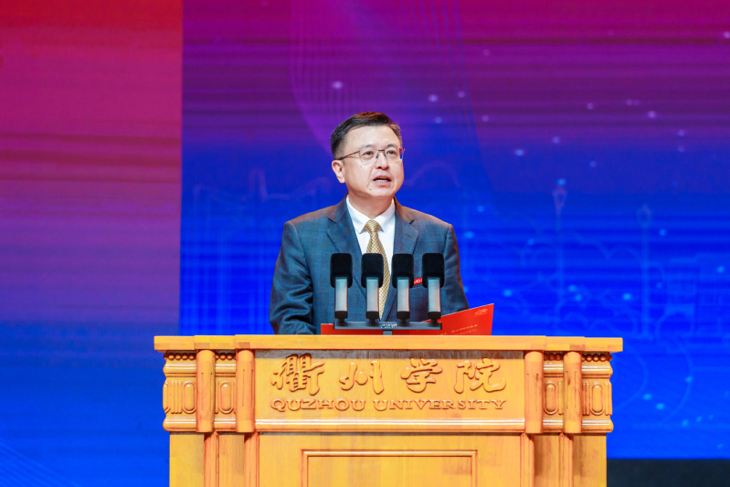 陈峰代表浙江省教育厅对衢州学院建校40周年表示祝贺。他说,从1985年的浙江工学院浙西分校起步,到2010年升格为本科高校,2024年获得硕士授予单位,学校发展加速度一年比一年提高,目前已经成为浙皖赣闽四省边际具有重要影响力的万人大学。取得这样的办学成绩,得益于衢州市委市政府办好唯一一所本科高校的决心,得益于历代衢院人付出的努力和心血。当前,高等教育已经成为“教育科技人才一体发展”的重要支柱,成为推动经济高质量发展的重要引擎,日益走到经济社会发展的中心地带,并成为区域竞争的重要赛道。省委省政府高度重视高等教育工作,作出了加快建设高等教育强省的战略部署,并启动实施“双一流196工程”,着力推动高等教育高质量发展、跨越式发展。希望衢州学院以建校40周年为新的起点,抓住教育强国建设和高等教育强省建设的机遇,以时不我待、只争朝夕的精神状态踏准节奏、加快发展,内提质量、外拓服务,交出一份不负时代、不负人民的高分答卷。