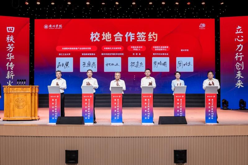 作为地方应用型高校,校地融合、校企合作、服务发展是学校的重要使命。近年来,学校做深做实科技创新和产业创新深度融合的文章,服务“五链”融合,为衢州加快建设四省边际中心城市提供有力支撑。会上,一批赋能地方发展的高能级平台与合作项目揭牌签约。全省空气动力装备智能制造重点实验室揭牌,能源碳中和新材料浙江省协同创新中心共建签约,衢州高端装备产业创新研究院、南孔文化研究院、未来乡村学院2.0、南孔家庭教育协同创新中心等校地合作共建签约,食品纸用抗菌保鲜剂NGAP20的开发与产业化应用、半导体设备传输腔精密加工技术开发、新能源储能变压器温升特性与热管理技术研究等合作项目签约。