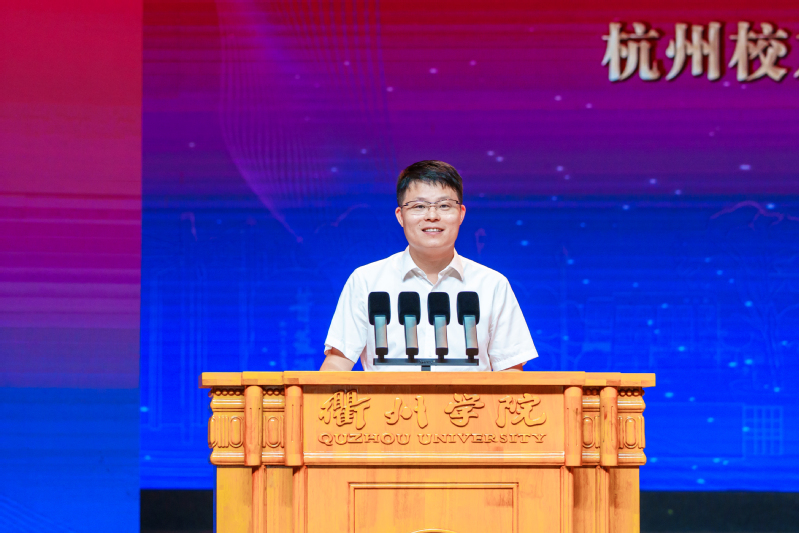 衢州学院党委书记邓崴致辞。他代表学校向与会来宾表示欢迎,向关心支持学校发展的各级领导、各位同仁、各界人士和广大校友致以衷心感谢。他说,衢州学院建校40年来,始终与时代同频共振、与地方共生共荣,朝着办好衢州人“家门口的大学”目标砥砺前行,一步步实现了从创建高专到升本更名再到申硕跃升的大跨越,走出了一条地方应用型大学特色内涵发展之路。站在建校40周年历史节点,学校要进一步深入学习习近平总书记关于教育的重要论述和考察浙江重要讲话精神,贯彻省委实施高教强省的决策部署,坚守“建设高水平特色鲜明的应用型大学”办学定位不动摇,凸显“应用型、地方性、开放式”办学特色,把握“强本增硕、创大升博、兴校荣城”主题主线,坚持“融入衢州、立足浙江、面向全国、放眼世界”,以服务求发展,以特色求跃升,全面提升对衢州加快建设四省边际中心城市的支撑力、贡献力,为推进教育强国、高教强省建设、服务区域高质量发展作出新的更大贡献。