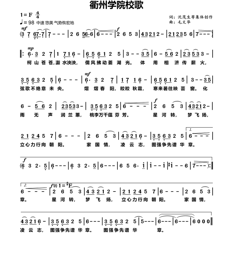 《衢州学院校歌》: